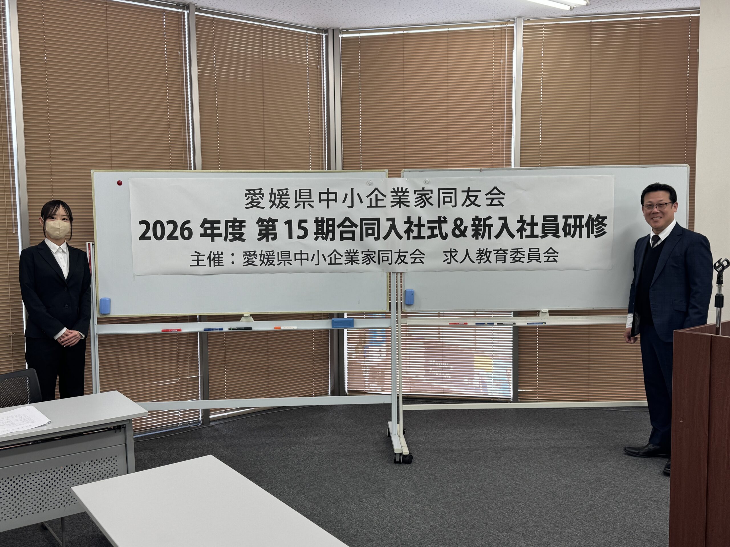 2026年4月2日(木)、松山市の二番町ホールにて、愛媛県中小企業家同友会主催の第15期 合同入社式&新入社員研修が開催されました。
